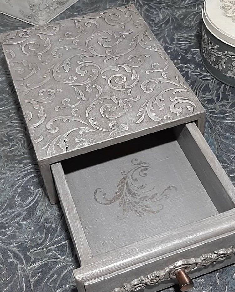 К этой виньетке идеально подходит роскошный фоновый трафарет "Изабелла" в классическом стиле, фрагментом которого он и является.