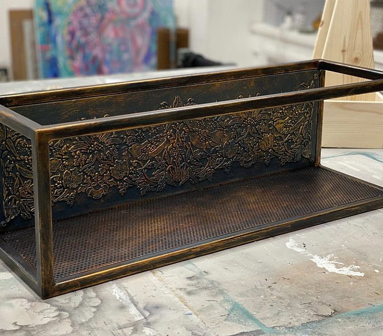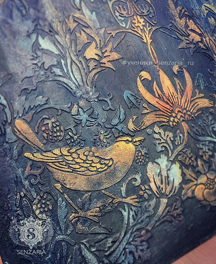 В прорези этого универсального инструмента удобно наносить краску различными способами: спонжем, круглой кистью или аэрографом. Трафарет легко вдавливается в глину, а также подходит для декоративной штукатурки. Для нанесения акриловых фактурных гелей наилучшим способом является использование шпателя, который также удобно использовать для удаления излишков краски без повреждения трафарета.