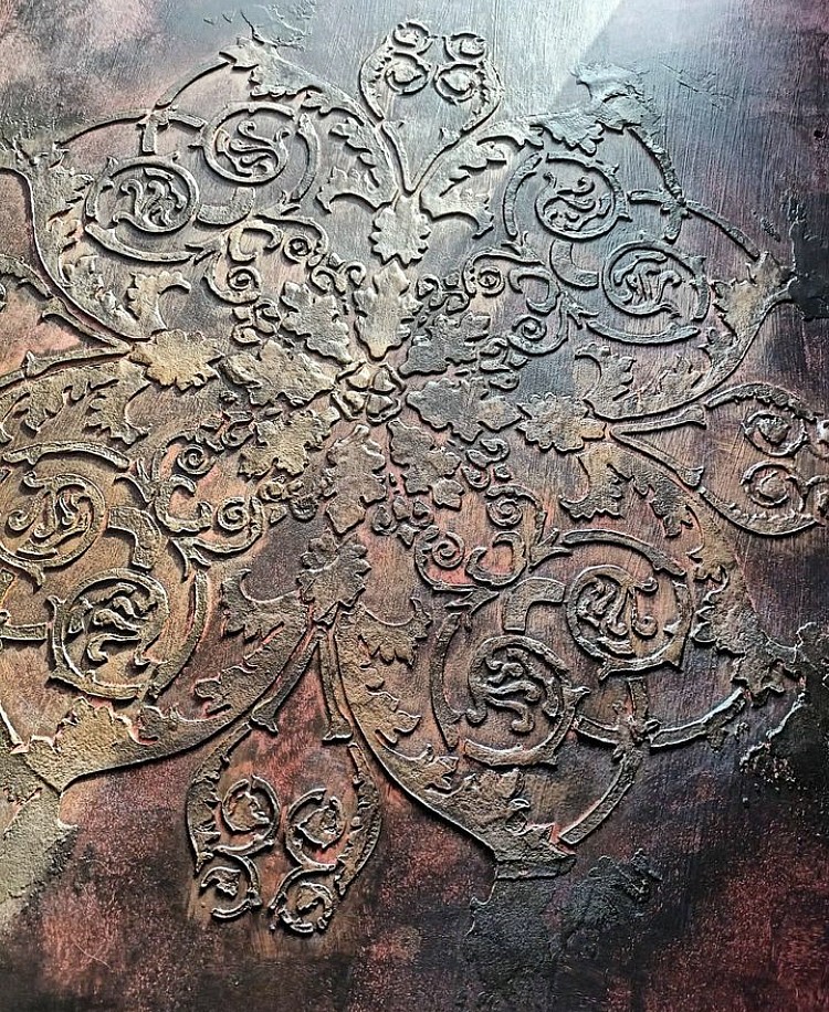 В прорези этого универсального инструмента удобно наносить краску различными способами: спонжем, круглой кистью или аэрографом. Трафарет легко вдавливается в глину, а также подходит для декоративной штукатурки. Для нанесения акриловых фактурных гелей наилучшим способом является использование шпателя, который также удобно использовать для удаления излишков краски без повреждения трафарета.